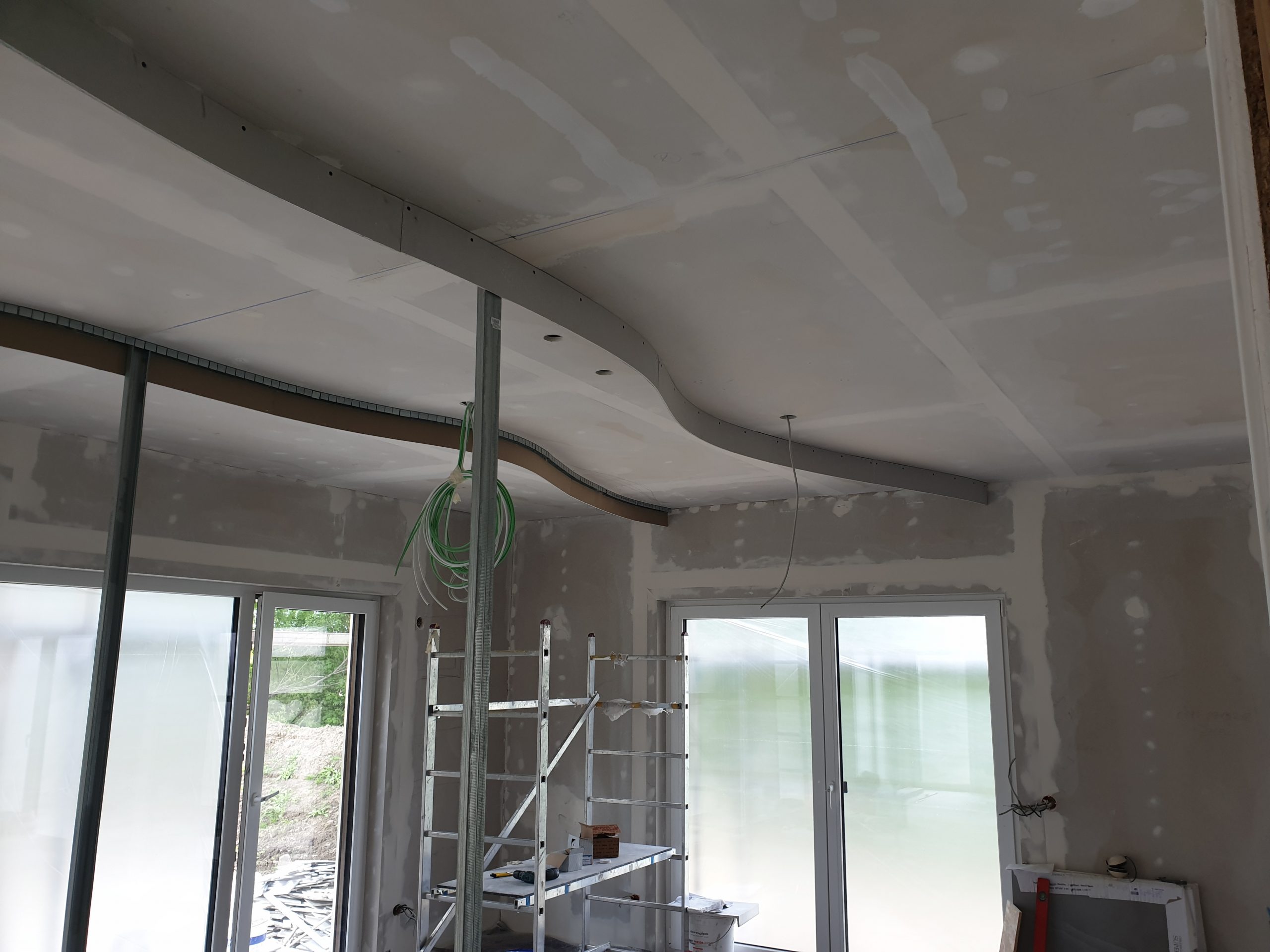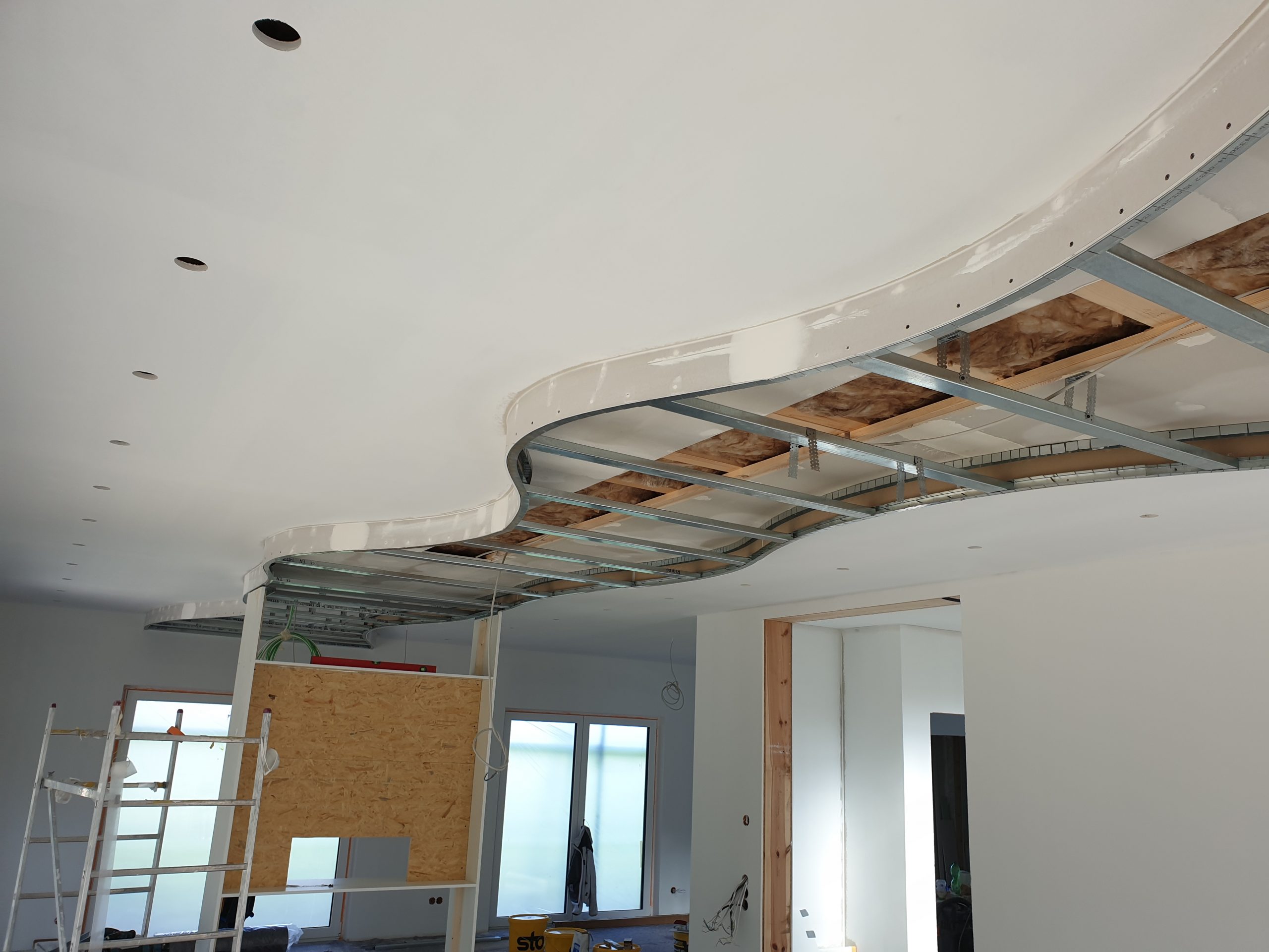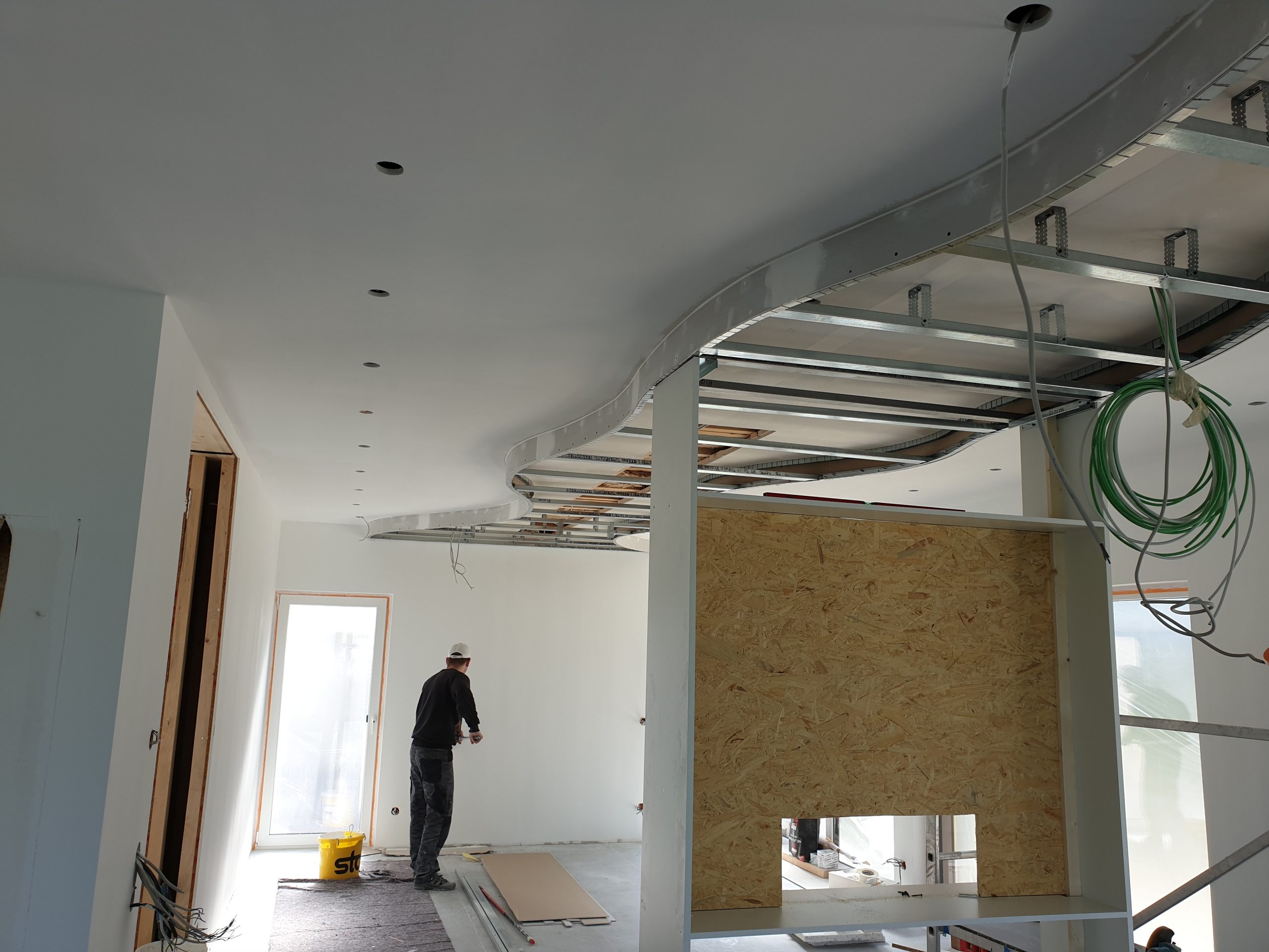 Im Trockenbau gestalten wir in kurzer Zeit Innenräume in Leichtbauweise. Trennwände werden aus vorgefertigten Bauteilen im Innenraum installiert.